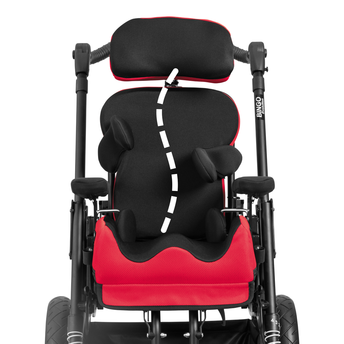 Tilpasningsmulighetene i ryggputen i kombinasjon med regulering av sidestøttene gir unik mulighet for tilpasning til asymmetriske kropper i vognen